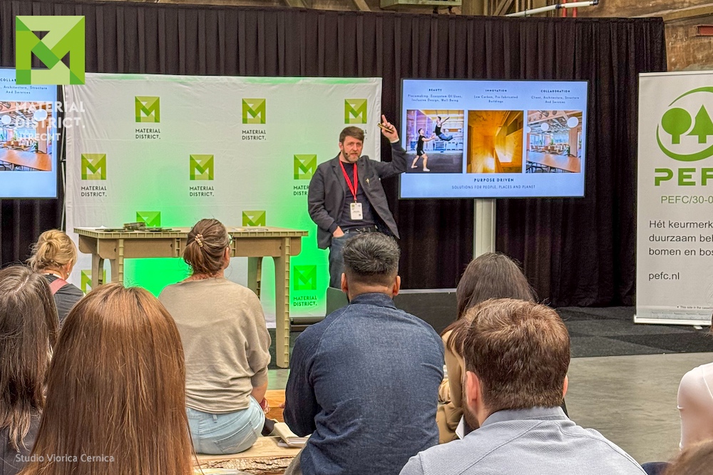 In addition to the exhibition, the content programme also continued to develop. In collaboration with PEFC Netherlands, MaterialDistrict organised the Tomorrow’s Timber Talks, a full-day lecture programme about timber construction and biobased materials in architecture. Notably, these lectures were registered with the Architects Register as official continuing professional education. In doing so, MaterialDistrict increasingly positions itself as a knowledge platform for professionals in the built environment.